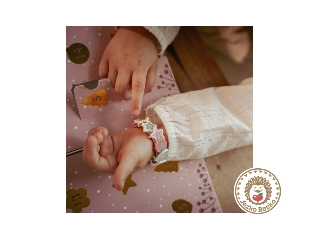 Adventný kalendár Little Dutch v podobe elegantnej knižky skrýva 24 okienok s prekvapením, ktoré poteší každú malú parádnicu. Každý deň objaví nový kúsok – náramok, prívesok alebo samolepku – a môže si postupne vytvárať vlastnú kolekciu šperkov.