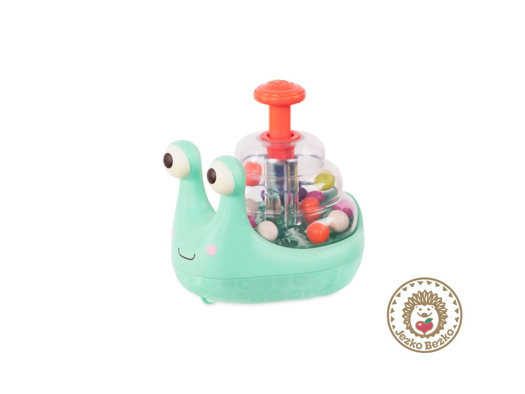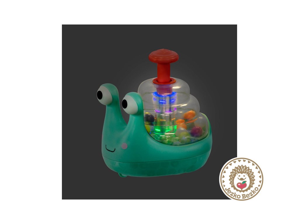 Originálna hračka v podobe slimáka na kolieskach s priehľadnou ulitou plnou farebných guličiek, ktoré po stlačení páčky lietajú vo vnútri ulity dookola podobne ako popcorn. Pre ešte väčší efekt vo vnútri zároveň blikajú farebné svetielka.