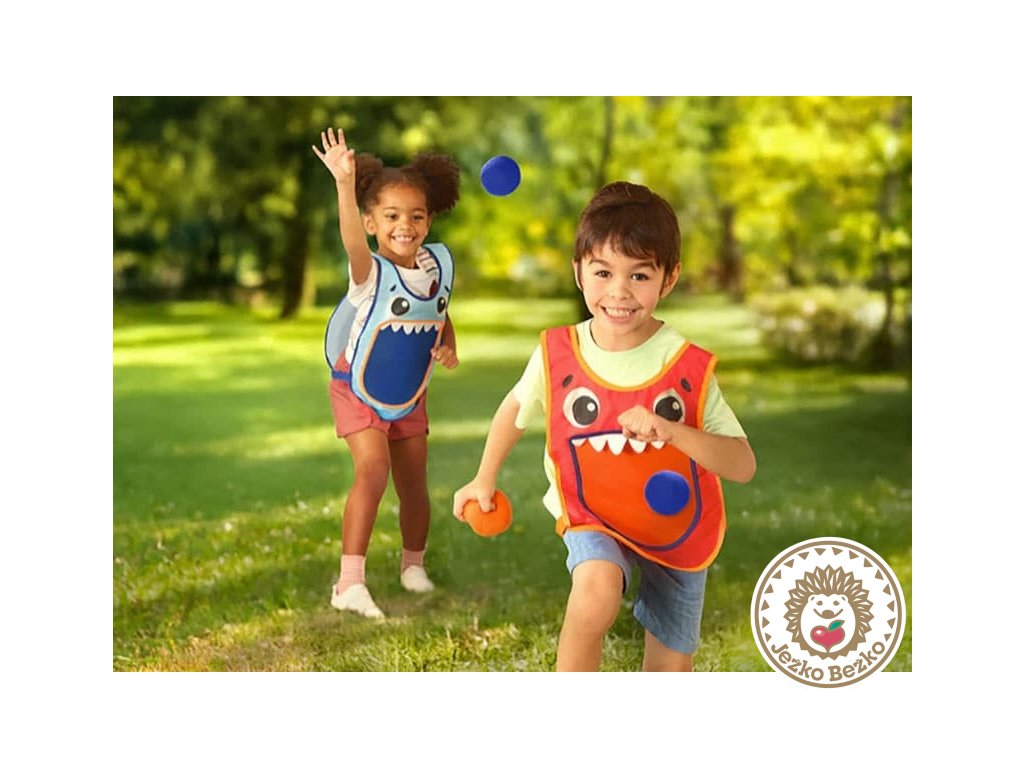 Je čas sa rozhýbať a poriadne si užiť zábavu! Táto všestranná herná súprava je ideálna pre aktívne hranie doma aj vonku. Deti sa môžu naháňať, schovávať alebo uhýbať pred „monštrom“ – alebo sa samy premeniť na jedno! Dve ľahko navliekacie monštier vesty a mäkké loptičky so suchým zipsom zaručujú bezpečnú, veselú a neustále sa meniacu hru.