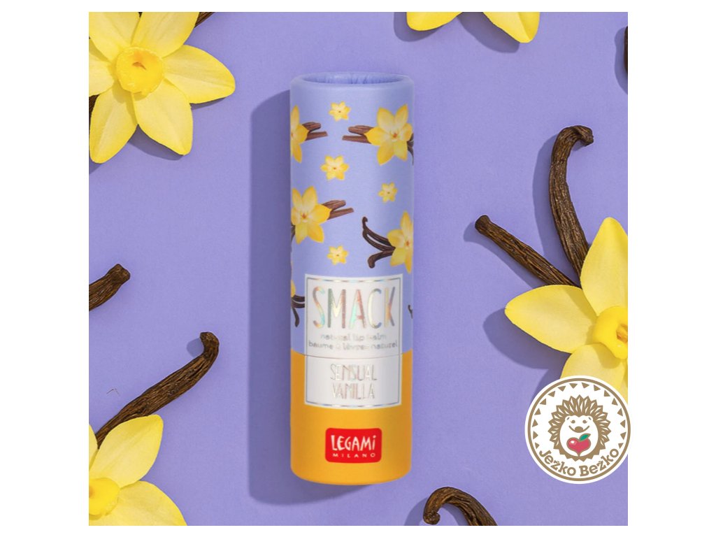 Prírodný balzam na pery Legami Smack - Sensual Vanilla s vôňou vanilky je výživný a ochranný balzam na pery s roztomilým dizajnom, ktorý môžete mať vo vrecku a použiť ho vždy, keď máte chuť na povzbudenie.