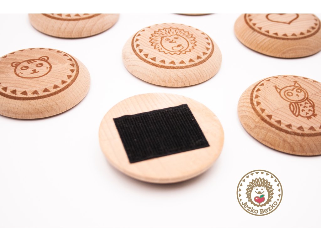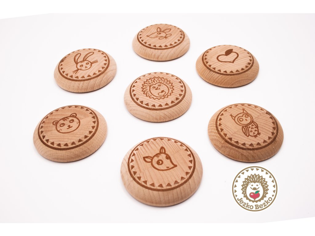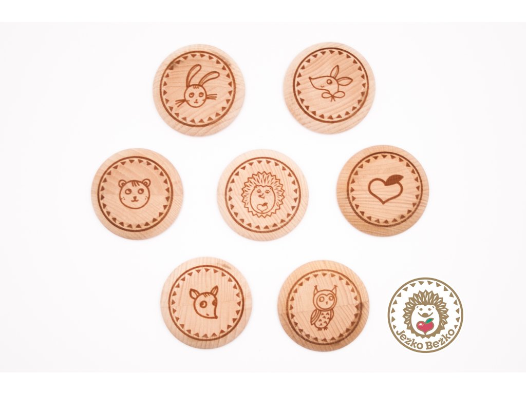 8 x okrúhliak s autorskou potlačou zvieratiek Ježko Bežko a logo Barewood