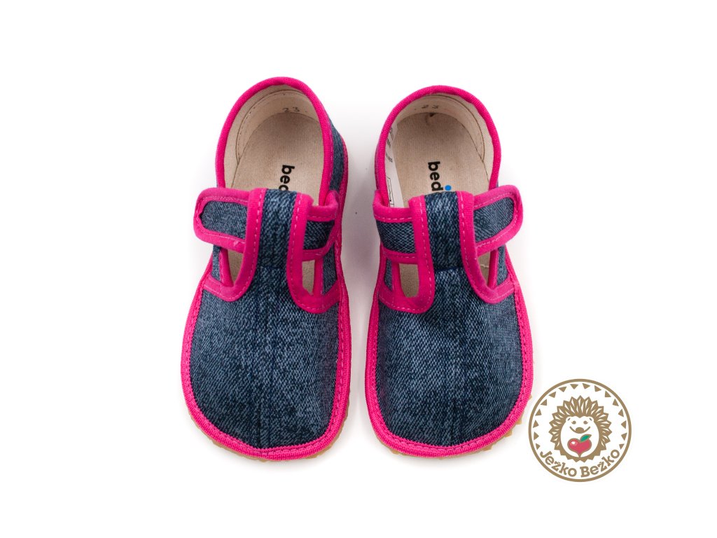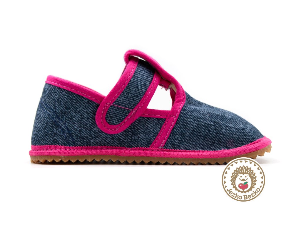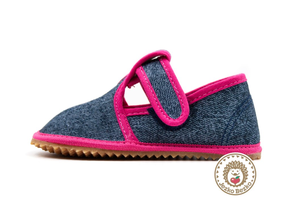 DETSKÉ BAREFOOT PAPUČE BEDA UŽŠIE (SLIM)) - PINK DENIM