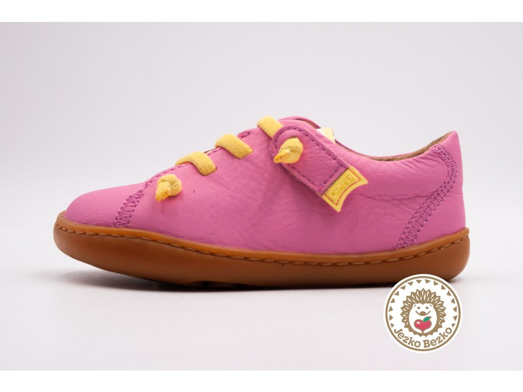 Doslova úžasné topánky na prvé kroky. Majú ohybnú gumenú podrážku, ktorá je vpredu vytiahnutá vyššie, aby chránila palček, aj topánky proti okopu. 20 % z podrážky tvorí recyklovaný materiál, keďže Camper sa neustále snaží znižovať spotrebu nových materiálov.