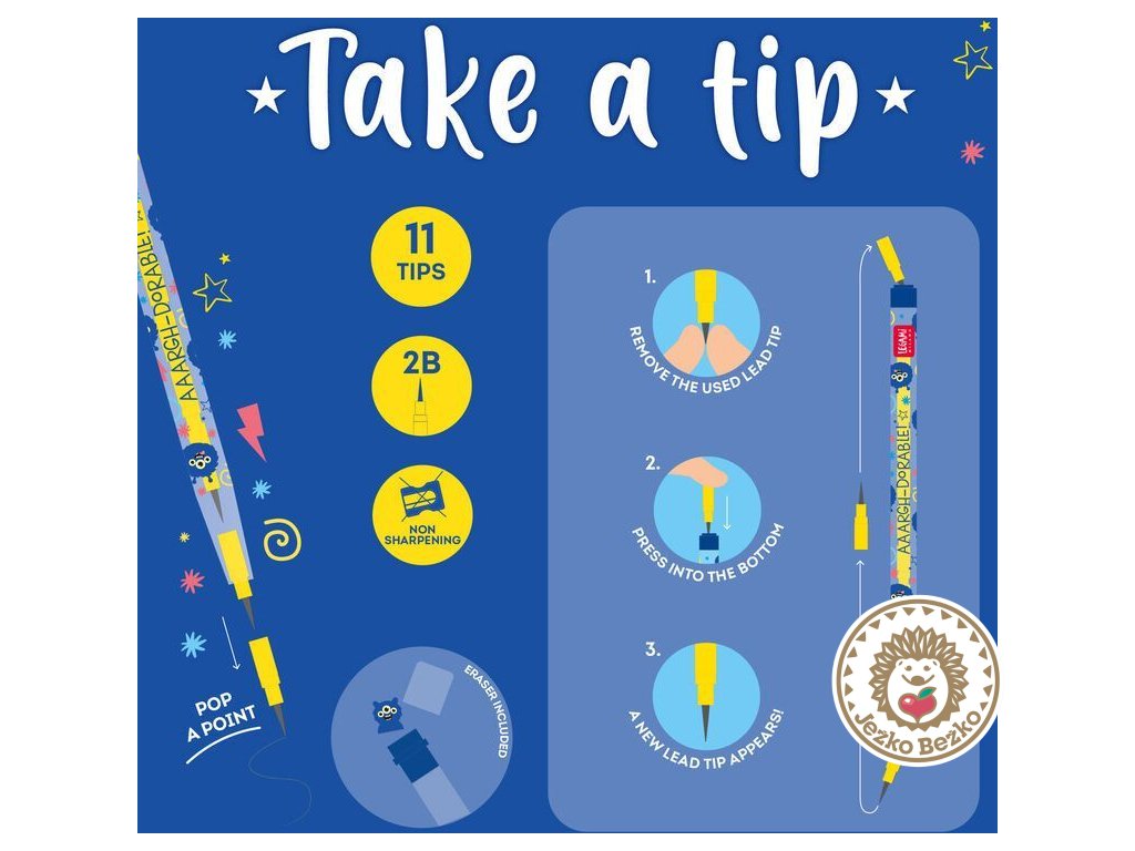 Budete vždy pripravení na písanie, aj keď práve nie je v dosahu žiadne strúhadlo. Farebná, zábavná a superpraktická – ideálna pre deti domov aj do školy.
