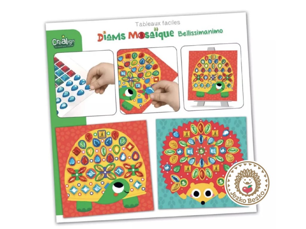 Nalepovacia diamantová mozaika Zvieratká je úžasná kreatívna sada od francúzskej značky Crea Lign z radu Jednoduché obrázky vhodné už pre deti od 3 rokov. Obsahuje 6 obrázkov zvieratiek a 281 diamantových nálepiek. Vďaka nim si deti farebné zvieratká krásne vyzdobia. Nechýba ani 1 stojan na následné vystavenie obrázkov.
