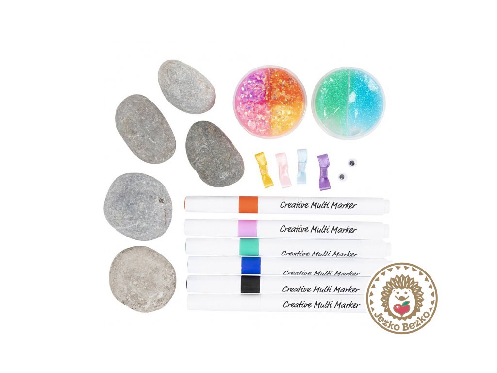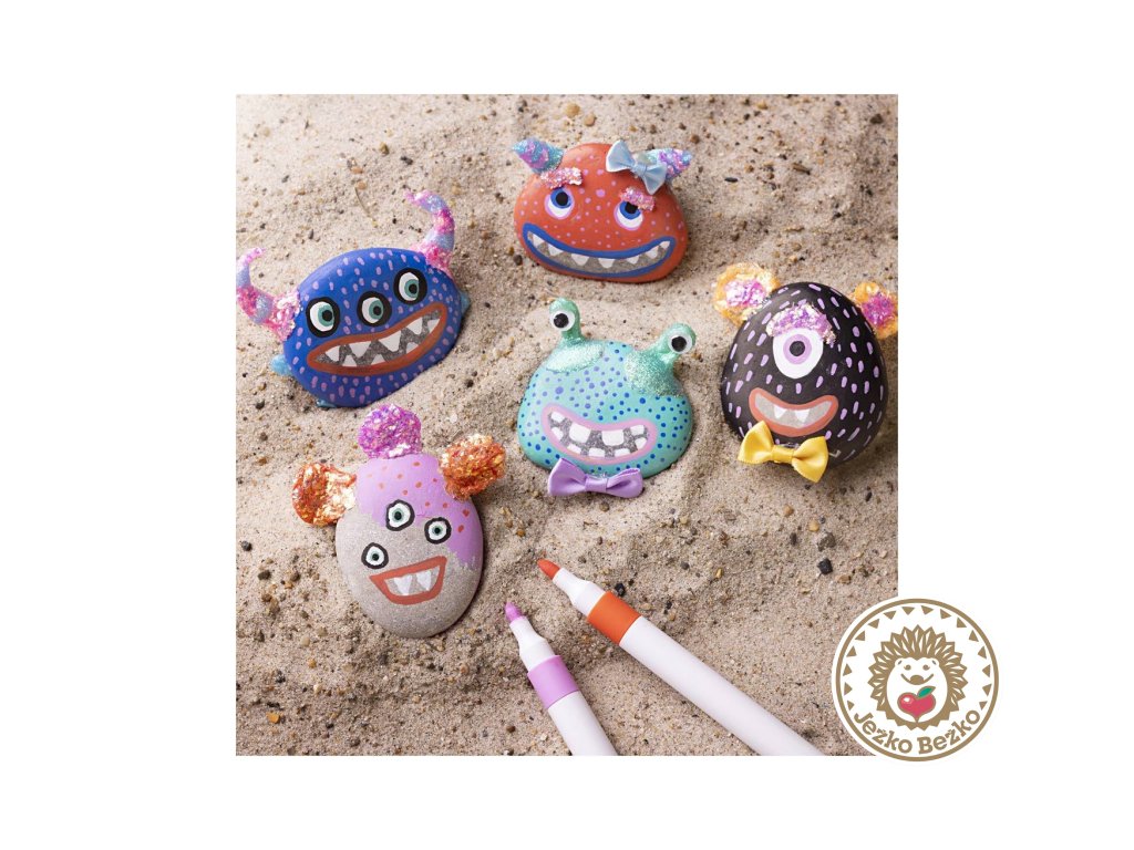 Zábavná sada pre deti, ktoré rady tvoria a majú rady srandu! Vďaka farebným fixkám, trblietavej hmote a smiešnym doplnkom si môžu vytvoriť vlastnú armádu roztomilých aj šialených kamenných príšeriek. Ideálna aktivita pre deti od 6 rokov.
