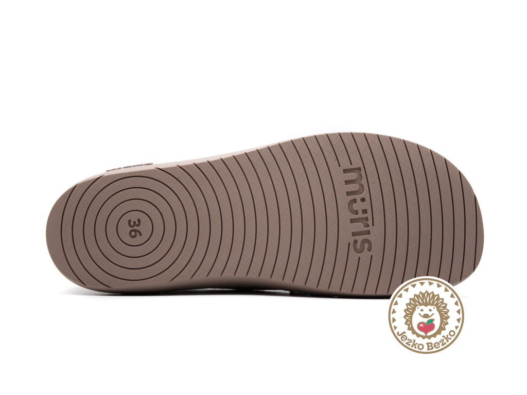 Muris je mladá značka zo Španielska, ktorá sa zameriava na udržateľnosť a rešpektujúci prístup k detským nôžkam aj k našej planéte. Využíva vegánske materiály na biologickej báze, organické suroviny a zvyšky z iných výrobných procesov – ako sú odpad z vinárskeho priemyslu, rastlinné oleje či prírodné vlákna z poľnohospodárstva.