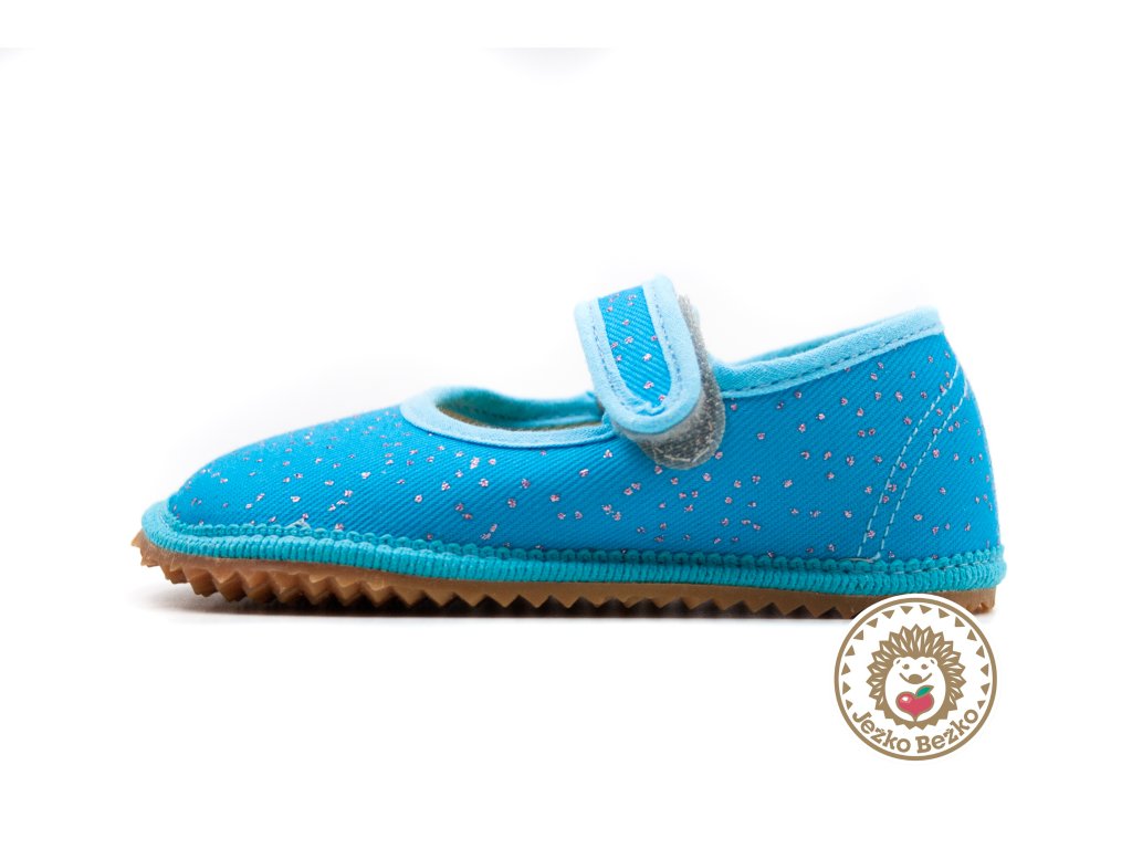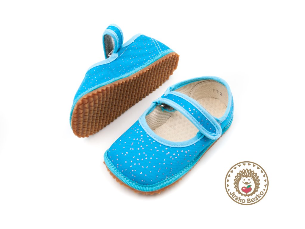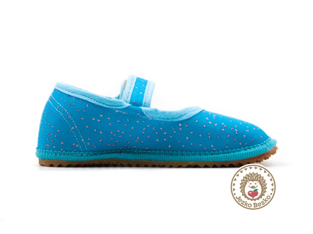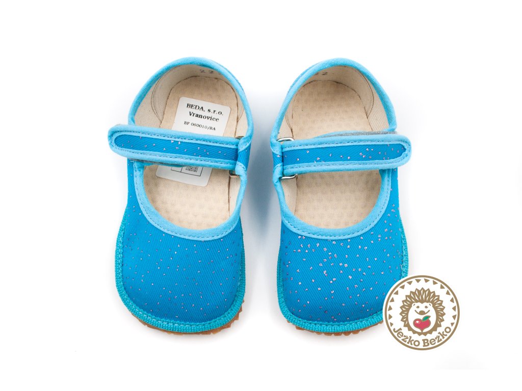 DETSKÉ BAREFOOT PAPUČE BEDA ŠIRŠIE (W) BALERÍNKY - TURQUOISE SHINE