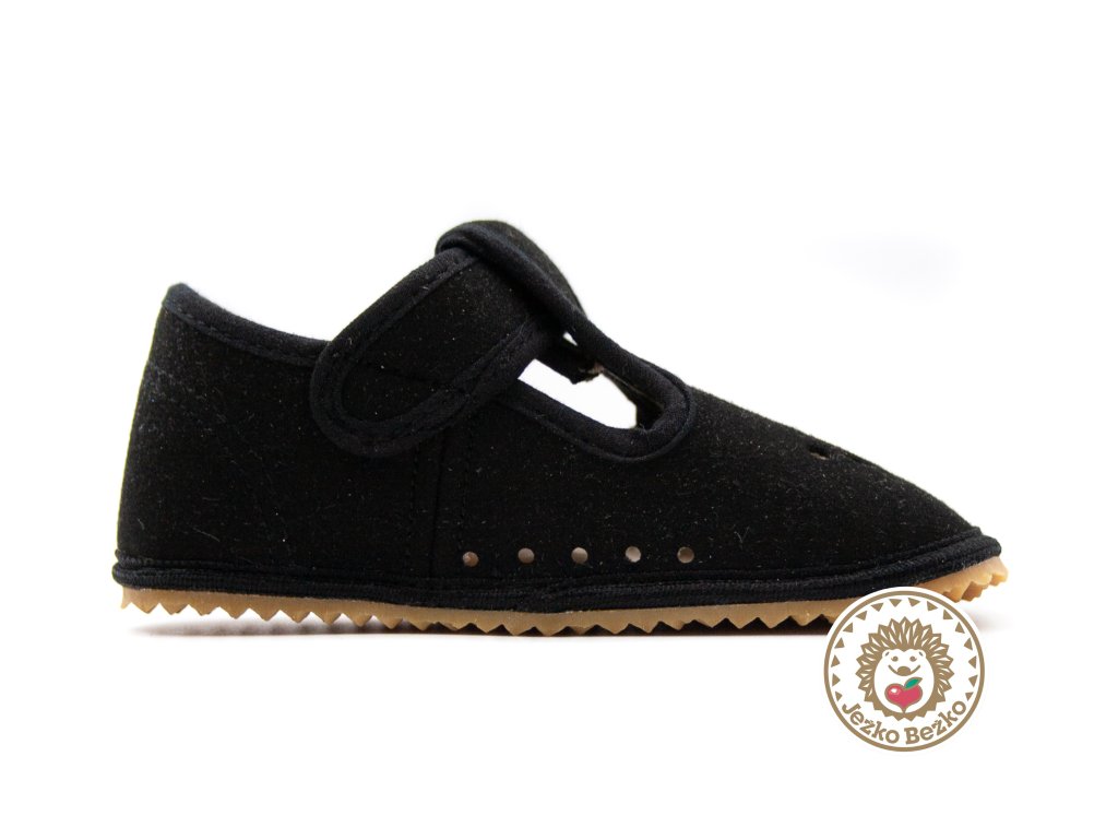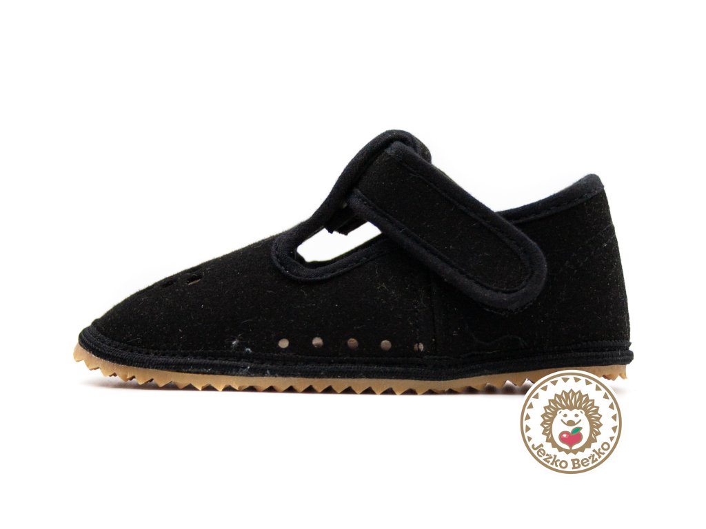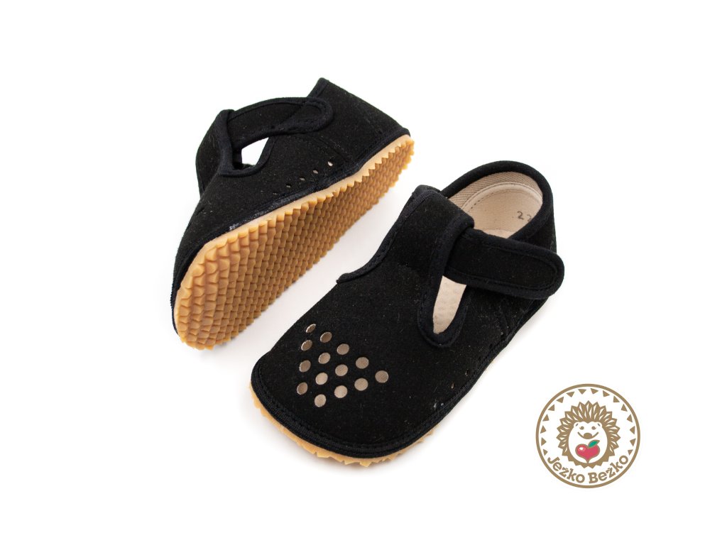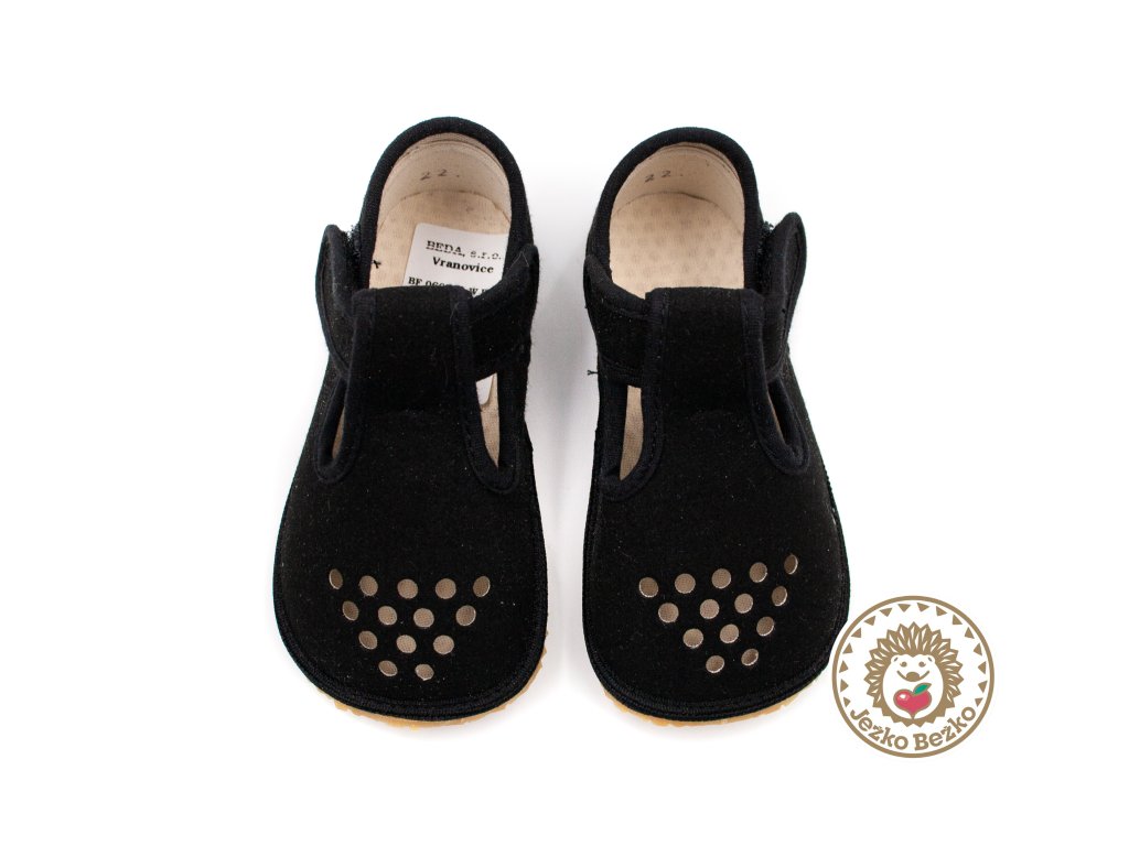 DETSKÉ BAREFOOT PAPUČE BEDA ŠIRŠIE (W) PERFOROVANÉ - JUST BLACK