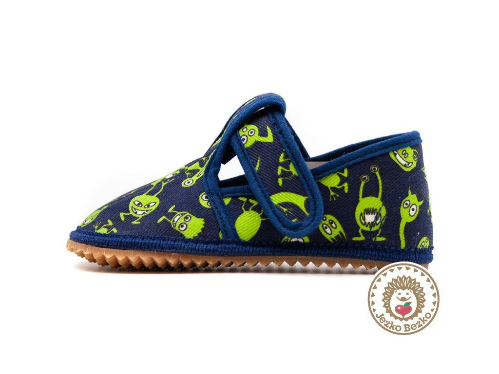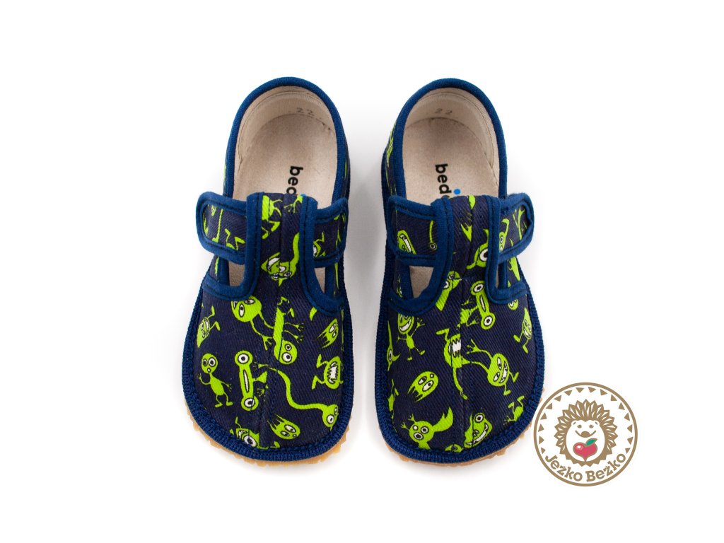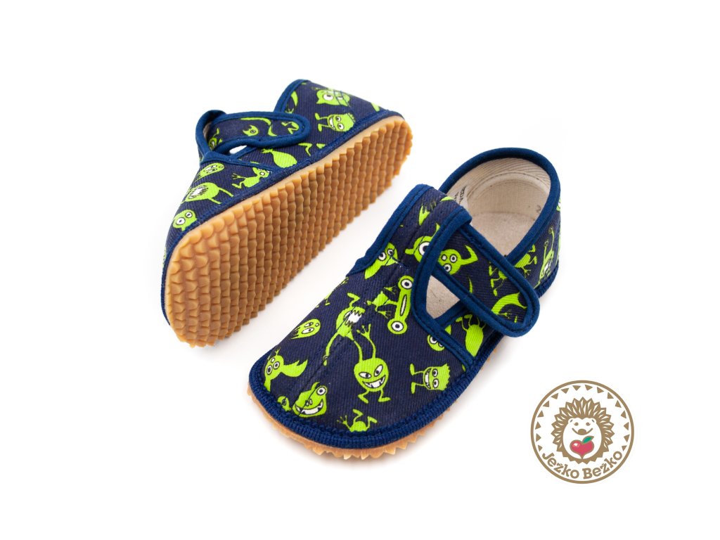 DETSKÉ BAREFOOT PAPUČE BEDA UŽŠIE (SLIM) - MONSTERS