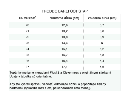 Ďalšia z európskych značiek v našej ponuke – Froddo, vznikla už v roku 1946 v Chorvátsku a odvtedy sa stala popredným výrobcom detskej obuvi s viac ako tisíc zamestnancami a svoje miesto už zaujala aj na Slovensku. Všetky topánky sa šijú priamo v Chorvátsku a nie v Ázii, používajú ekologické materiály a dbajú na to, aby koža, ktorú nakupujú bola najvyššej kvality bez obsahu nebezpečných ťažkých kovov a chrómu. Okrem toho používajú výlučne lepidlá na báze vody.