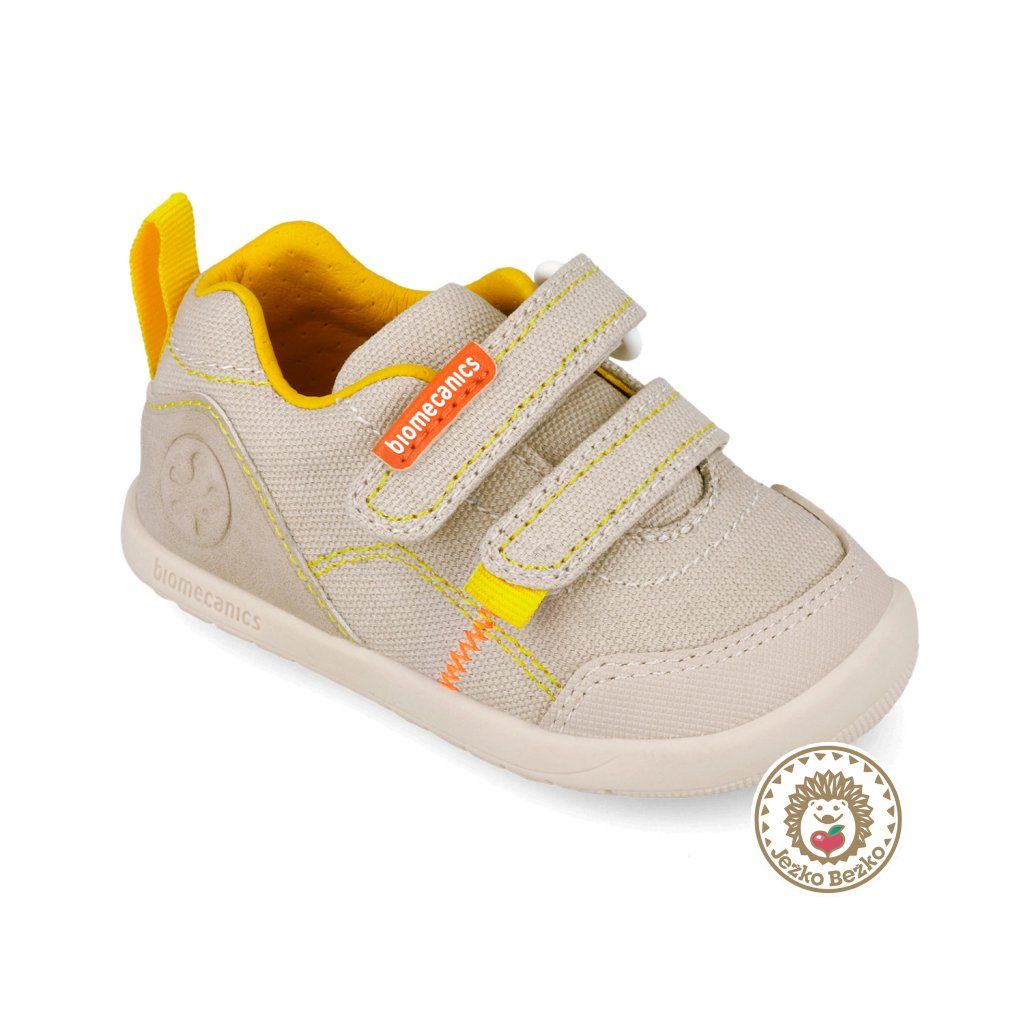 DETSKÉ BAREFOOT TENISKY BIOMECANICS PIQUE - BEIGE Y AMARILLO