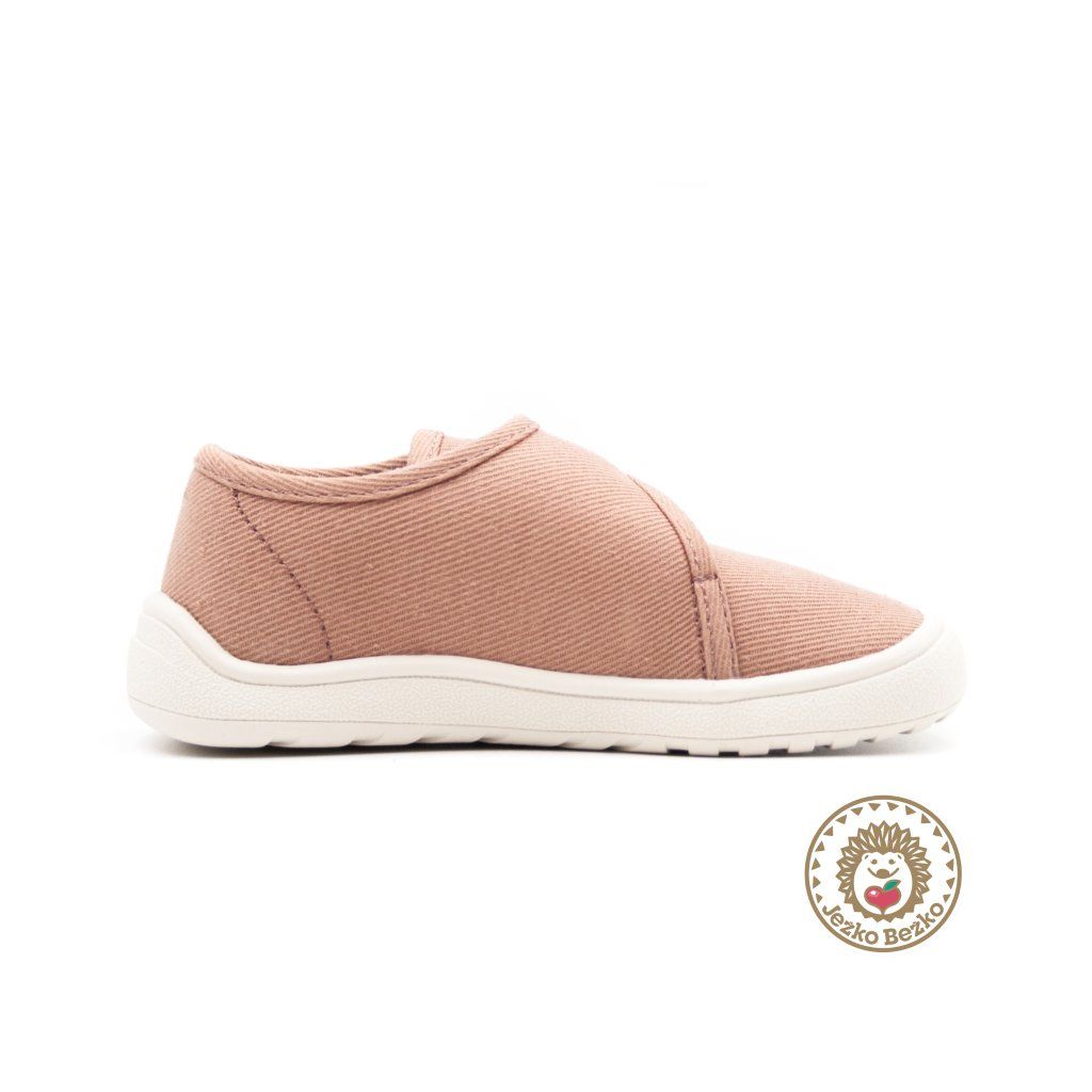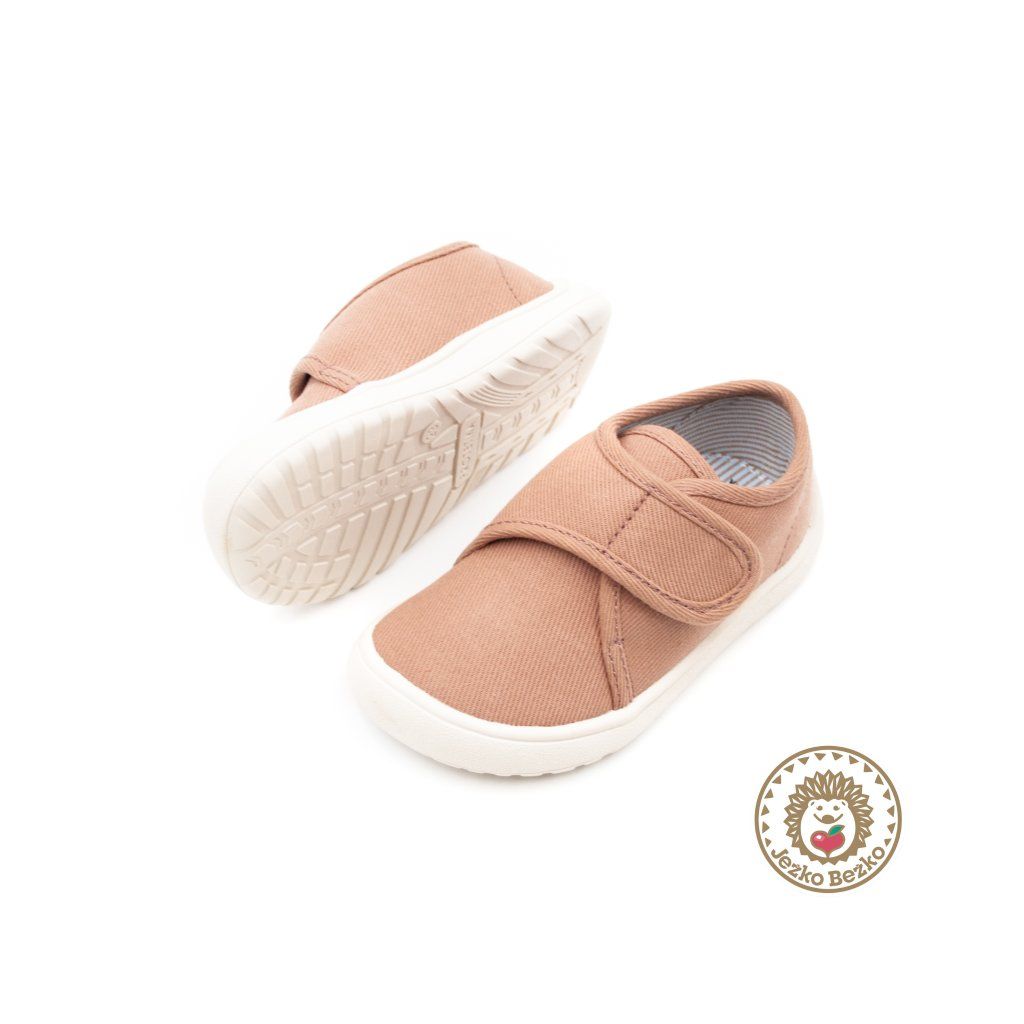 Priedušný bavlnený zvršok zabezpečuje skvelú ventiláciu, vďaka čomu sú tieto tenisky ideálne na teplejšie dni. Mäkká podrážka, široká špička a minimalistický dizajn robia z týchto pláteniek skvelú voľbu pre zdravý vývoj detských nôh.