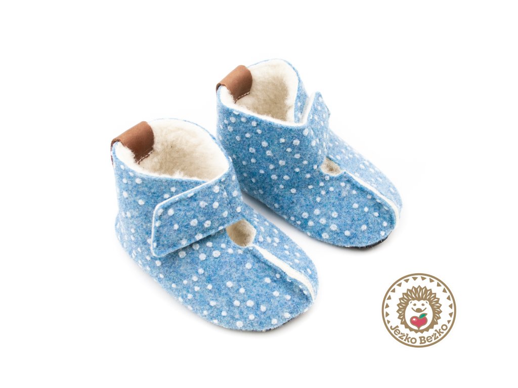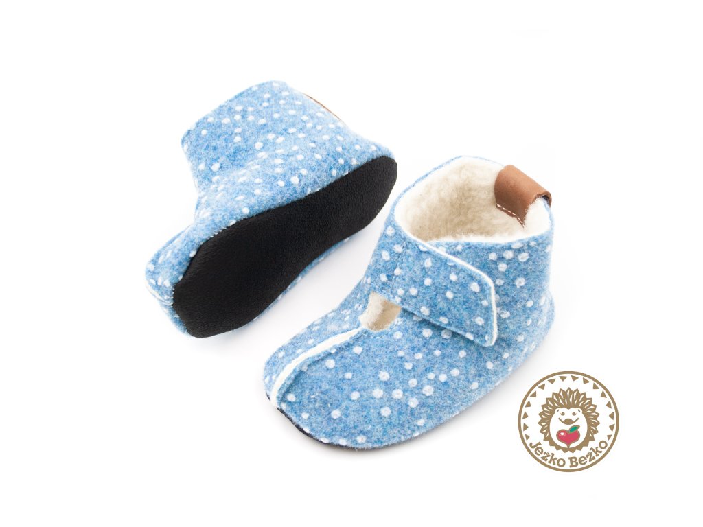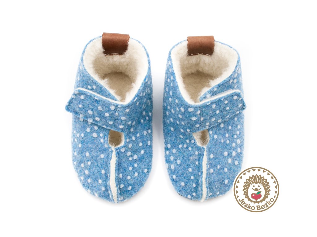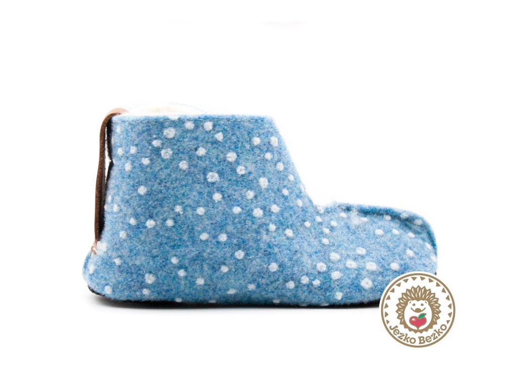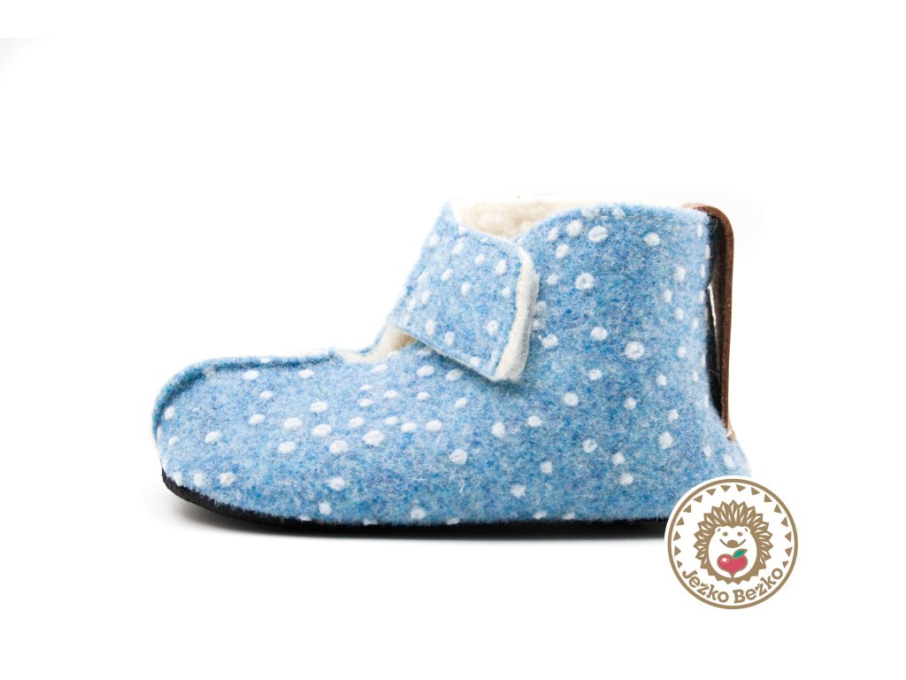 DETSKÉ BAREFOOT VLNENÉ PAPUČE OMA KING KAKU -BLUE DOTS