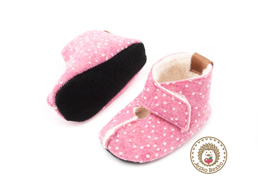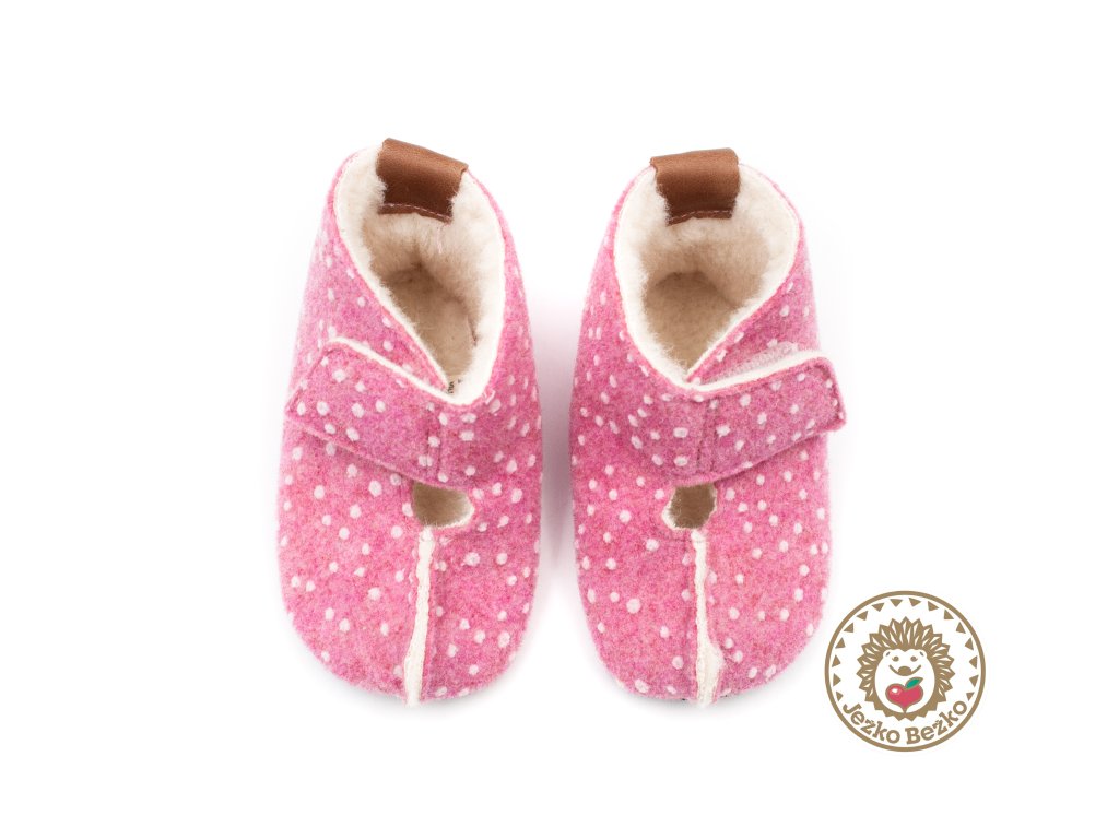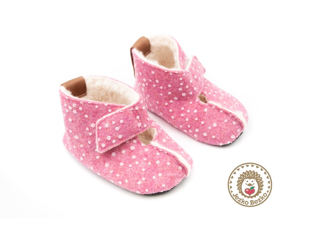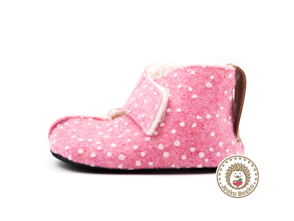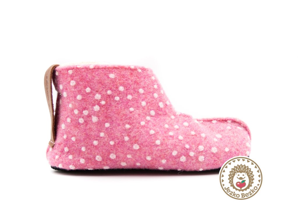 DETSKÉ BAREFOOT VLNENÉ PAPUČE OMA KING KAKU -PINK DOTS