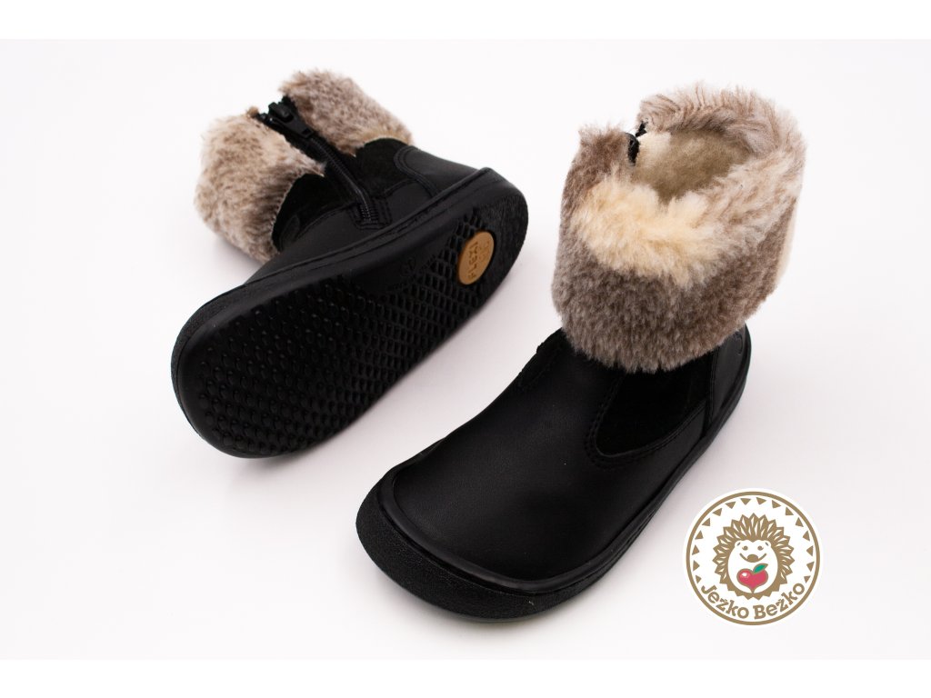 DETSKÉ BAREFOOT ZATEPLENÉ TOPÁNKY FLEXI NENS SERRAJE - NEGRO/BEIGE