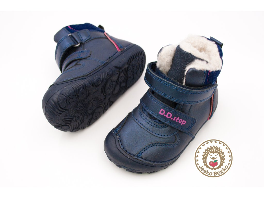 DETSKÉ BAREFOOT ZIMNÉ TOPÁNKY D.D.STEP 073 - ROYAL BLUE PINK