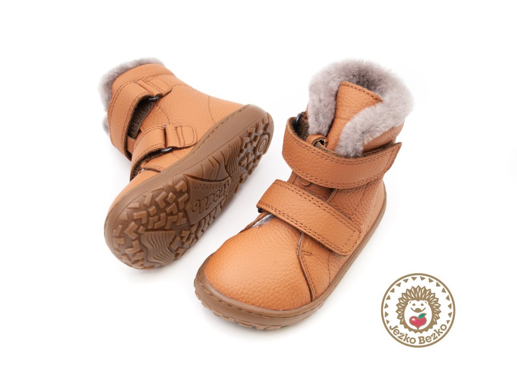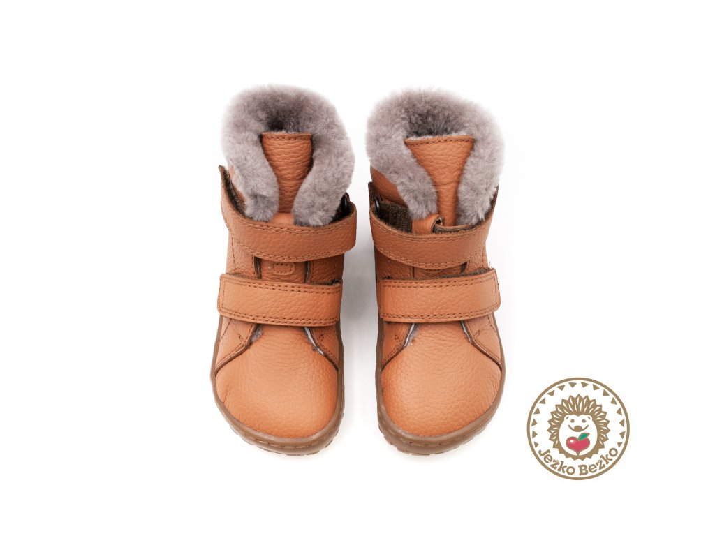 DETSKÉ BAREFOOT ZIMNÉ TOPÁNKY FRODDO BAREFOOT FURRY BOOT - COGNAC