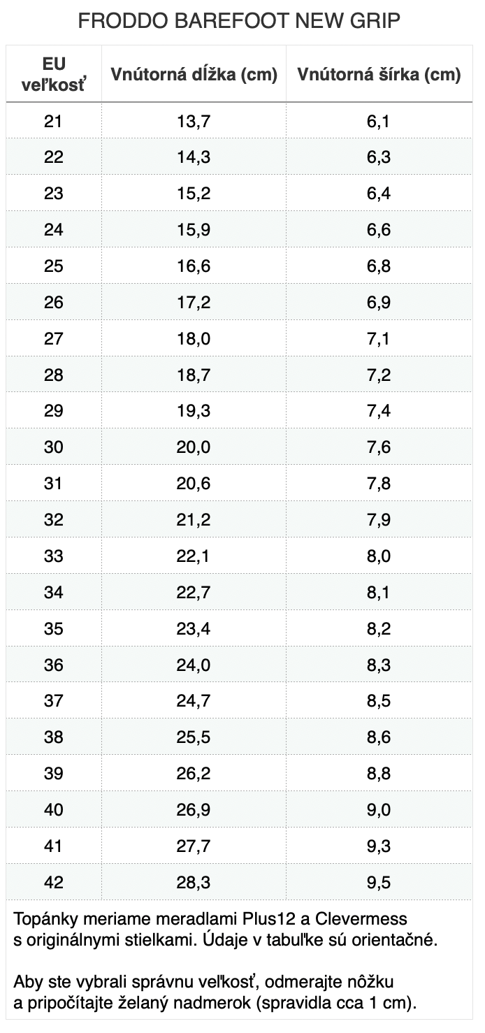 Pozor, topánky sú o niečo väčšie ako bežné číslovanie, tak odporúčame premerať nohy a vybrať podľa tabuľky, alebo objednať o číslo menšie.