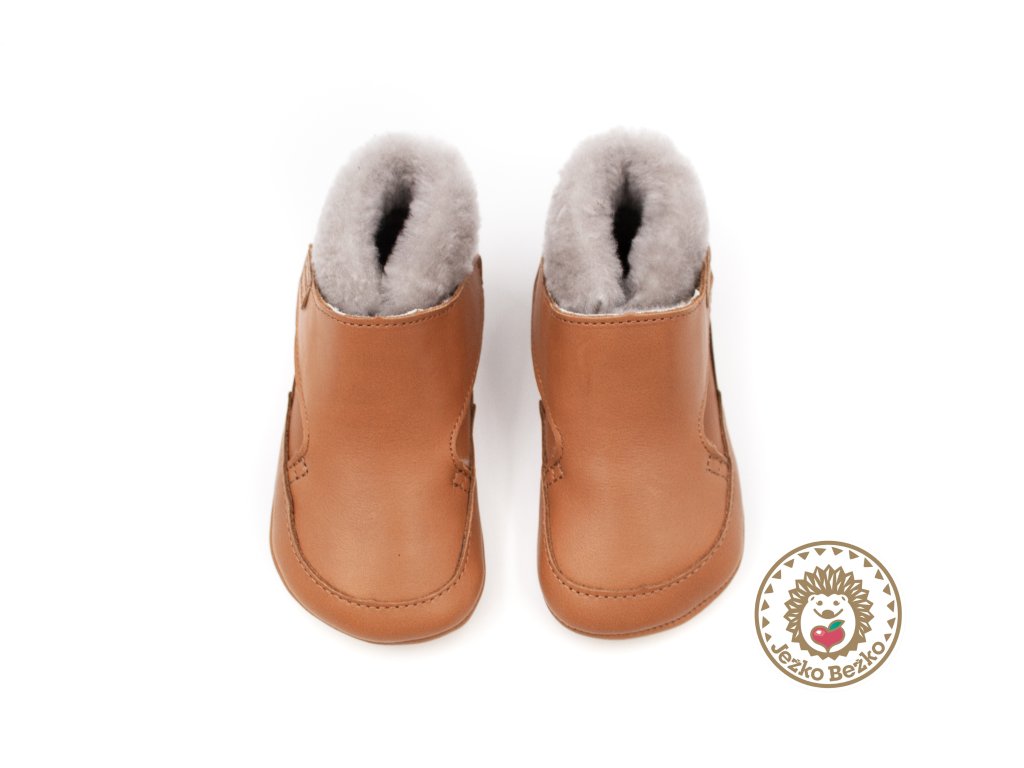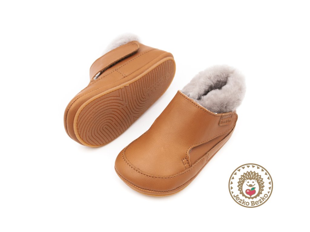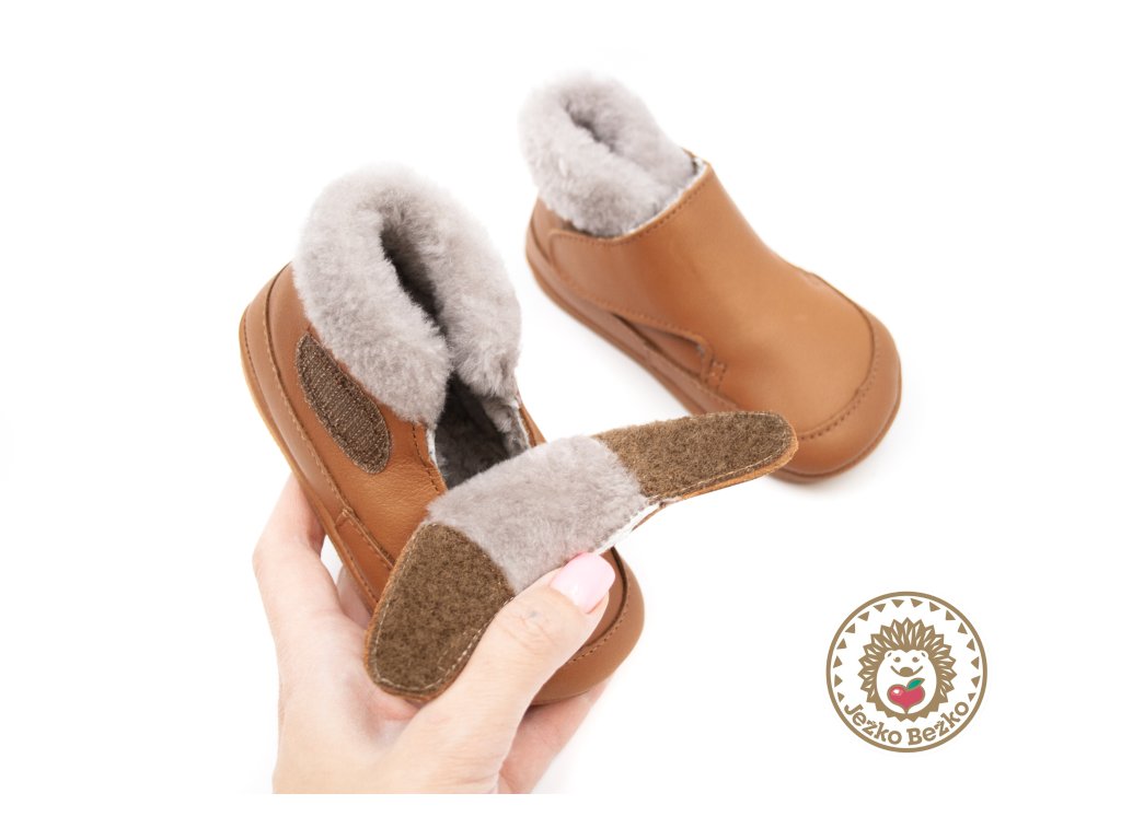 DETSKÉ BAREFOOT ZIMNÉ TOPÁNKY FRODDO FURRY WALKERS - COGNAC