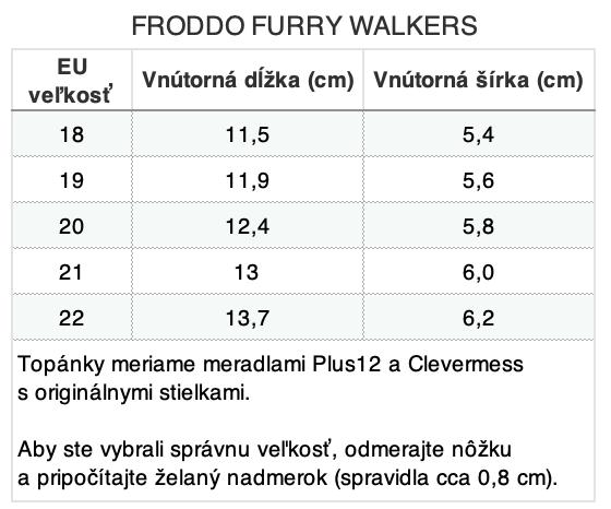 Ďalšia z európskych značiek v našej ponuke – Froddo, vznikla už v roku 1946 v Chorvátsku a odvtedy sa stala popredným výrobcom detskej obuvi s viac ako tisíc zamestnancami a svoje miesto už zaujala aj na Slovensku. Všetky topánky sa šijú priamo v Chorvátsku a nie v Ázii, používajú ekologické materiály a dbajú na to, aby koža, ktorú nakupujú bola najvyššej kvality bez obsahu nebezpečných ťažkých kovov a chrómu. Okrem toho používajú výlučne lepidlá na báze vody.