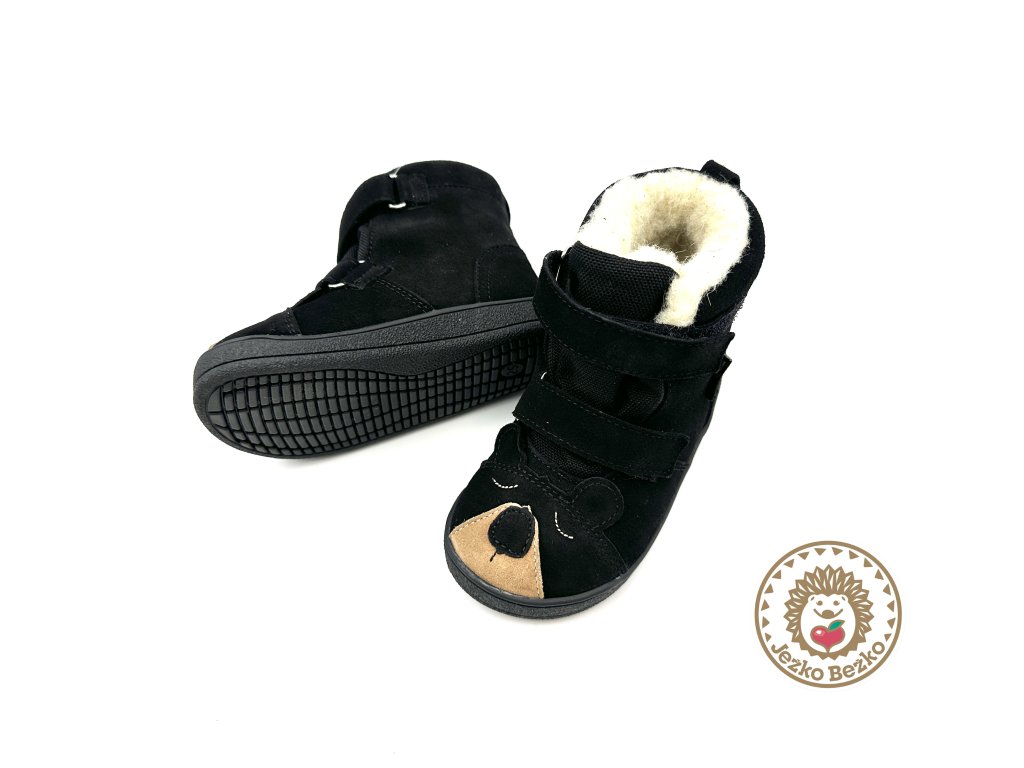 DETSKÉ BAREFOOT ZIMNÉ TOPÁNKY MIDO SHOES MODEL 62 - BLACK TEDDY