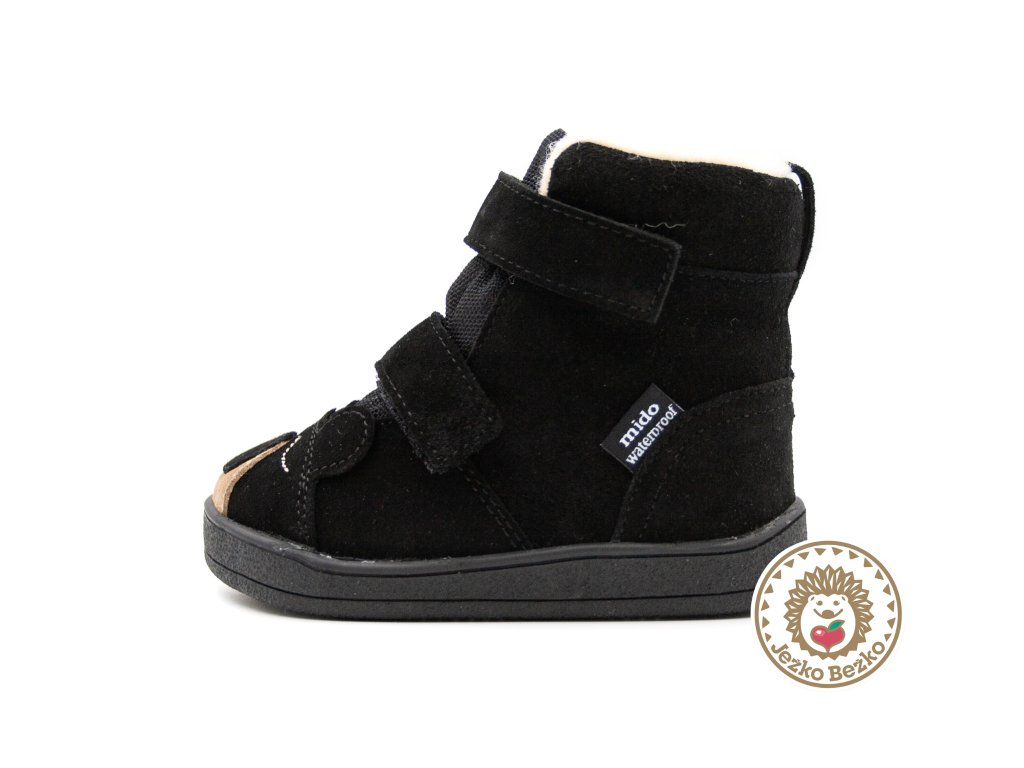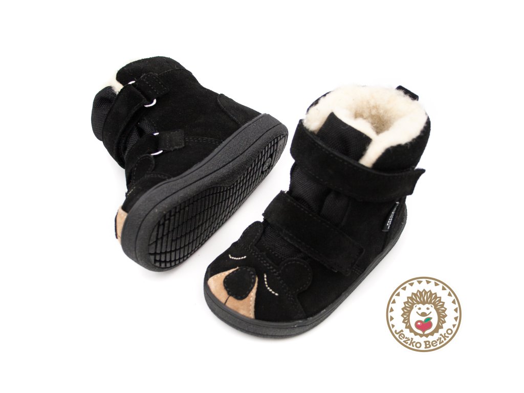 DETSKÉ BAREFOOT ZIMNÉ TOPÁNKY MIDO SHOES MODEL 62 - BLACK TEDDY