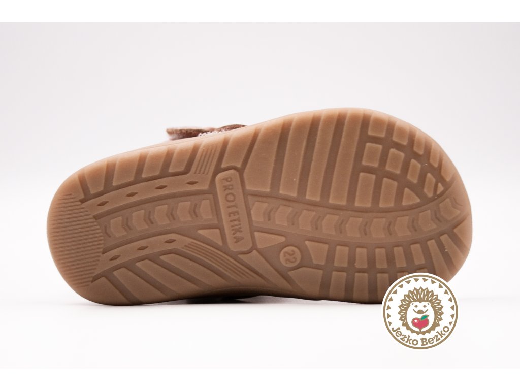 Protetika je slovenská značka s tradíciou od roku 1923, známa výrobou ortopedickej obuvi na mieru. V posledných rokoch ponúka aj obuv pre bežné nosenie, vrátane modelov vhodných pre barefoot štýl. Topánky Protetika sú vyrobené z kvalitnej kože, majú širšiu špičku, vyberateľnú vložku a flexibilnú podrážku, ktorá umožňuje prirodzený pohyb nohy. V JežkoBezKo predávame tieto barefoot modely pre zdravý a pohodlný vývoj detských nôh.