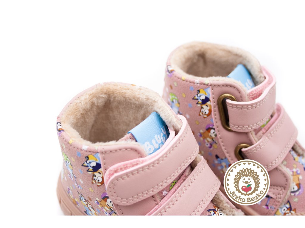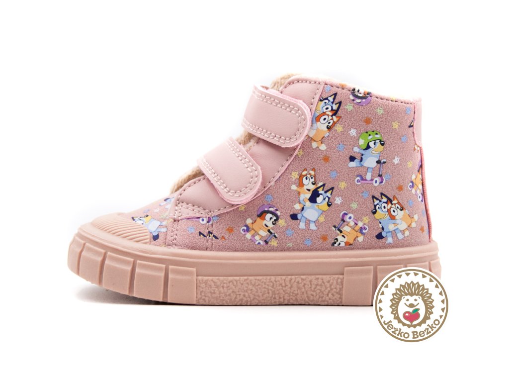 Tieto detské členkové tenisky s motívom obľúbeného psíka Bluey sú ideálnou voľbou na prechodné obdobie. Vďaka zatepleniu mäkkým fleecom udržia nohy dieťaťa v teple, kým pružná gumová podrážka poskytuje pohodlie a stabilitu pri každom kroku.