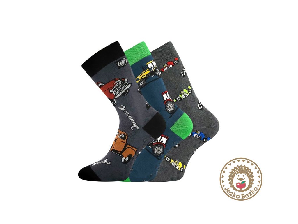 Detské veselé ponožky Boma® s protišmykovými bodkami majú zosilnené froté chodidlo tlmiace nárazy, nohy tak majú milé deti ako v bavlnke. Vďaka pružnému elastanu dobre držia tvar a nepadajú dole. Bavlnené ponožky sú hebké na dotyk dokážu dobre pojať vlhkosť. Detské ponožky sú klasické výšky a majú mäkký pružný lem. Vhodné na celodenné nosenie. Vďaka protišmykovému chodidlu s ABS úpravou nemusia vaše deti ani nosiť papuče.