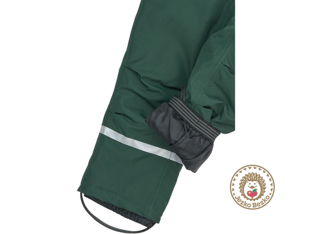 Vodný stĺpec až 20 000 mm, podlepené švy a priedušnosť 5 000 g/m²/24h zaručia maximálnu ochranu pred vlhkom, vetrom aj snehom. Výplň poskytuje spoľahlivú izoláciu a reflexné prvky 3M zvyšujú bezpečnosť dieťaťa aj za zhoršených svetelných podmienok.
