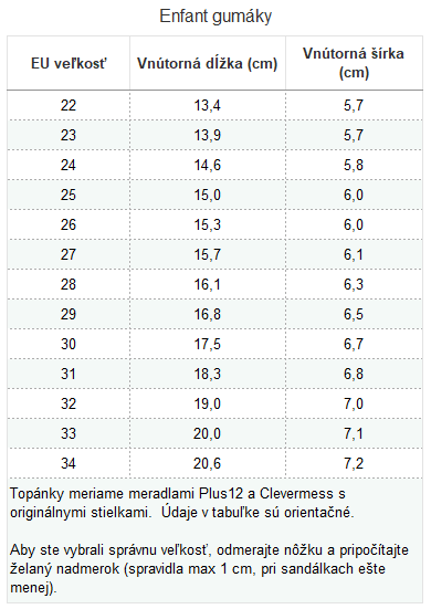 Čižmičky sú približne o 2 čísla menšie než býva bežné – odporúčame dôkladne zmerať nôžku a riadiť sa veľkostnou tabuľkou.