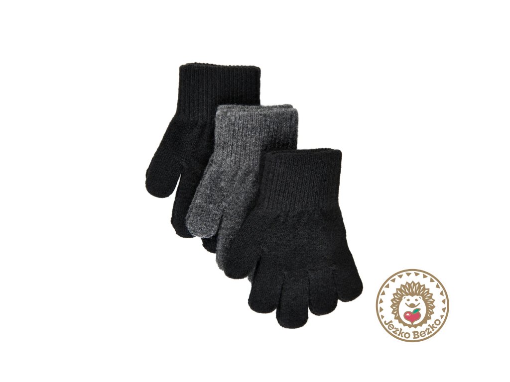 DETSKÉ RUKAVICE S VLNOU 3-BALENIE MIKK-LINE MAGIC - BLACK/ANTRAZITE/BLACK