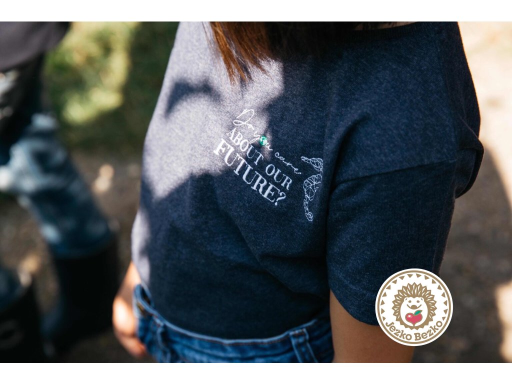Na prednej strane trička je vyšitý nápis “Do you care about our future?”(“Staráte sa o našu budúcnosť?”). Text je doplnený vyšitým grafickým prvkom – morským koníkom, ako symbolom oceánu. Ochrana oceánu je jednou z najdôležitejších priorít pri riešení klimatickej zmeny a pre budúcnosť zdravej planéty