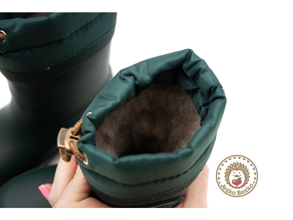 Gumáky majú šnúrky na úpravu vrchnej časti, čo zabraňuje vniknutiu vody alebo snehu. Teplá podšívka z vlny a polyesteru zabezpečuje, že nohy dieťaťa zostanú v teple a suchu, pričom vlna aktívne odvádza vlhkosť. Mäkké a vyberateľné stielky umožňujú pohodlné prispôsobenie a v prípade, že sa do gumákov dostane voda, môžu byť ľahko vybraté a vysušené.