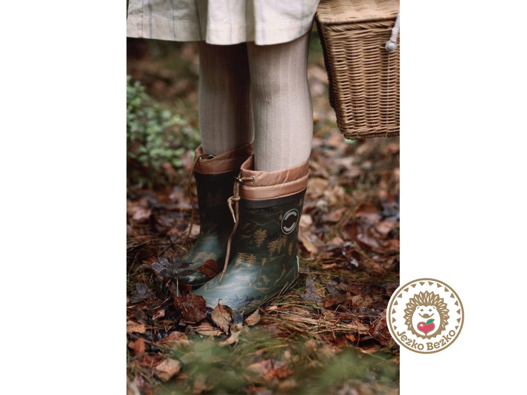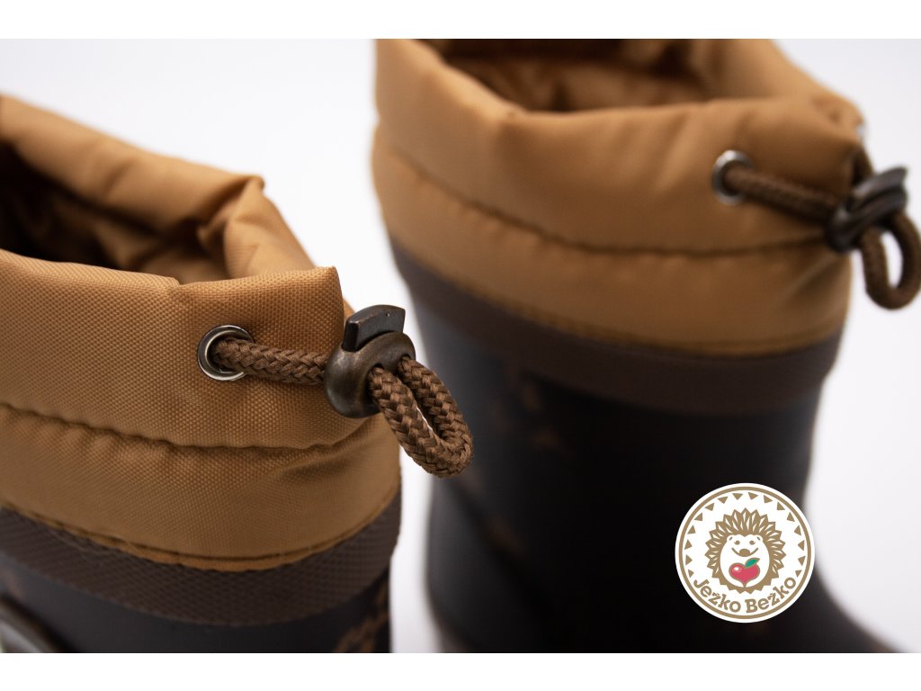 Gumáky majú šnúrky na úpravu vrchnej časti, čo zabraňuje vniknutiu vody alebo snehu. Teplá podšívka z vlny a polyesteru zabezpečuje, že nohy dieťaťa zostanú v teple a suchu, pričom vlna aktívne odvádza vlhkosť. Mäkké a vyberateľné stielky umožňujú pohodlné prispôsobenie a v prípade, že sa do gumákov dostane voda, môžu byť ľahko vybraté a vysušené.