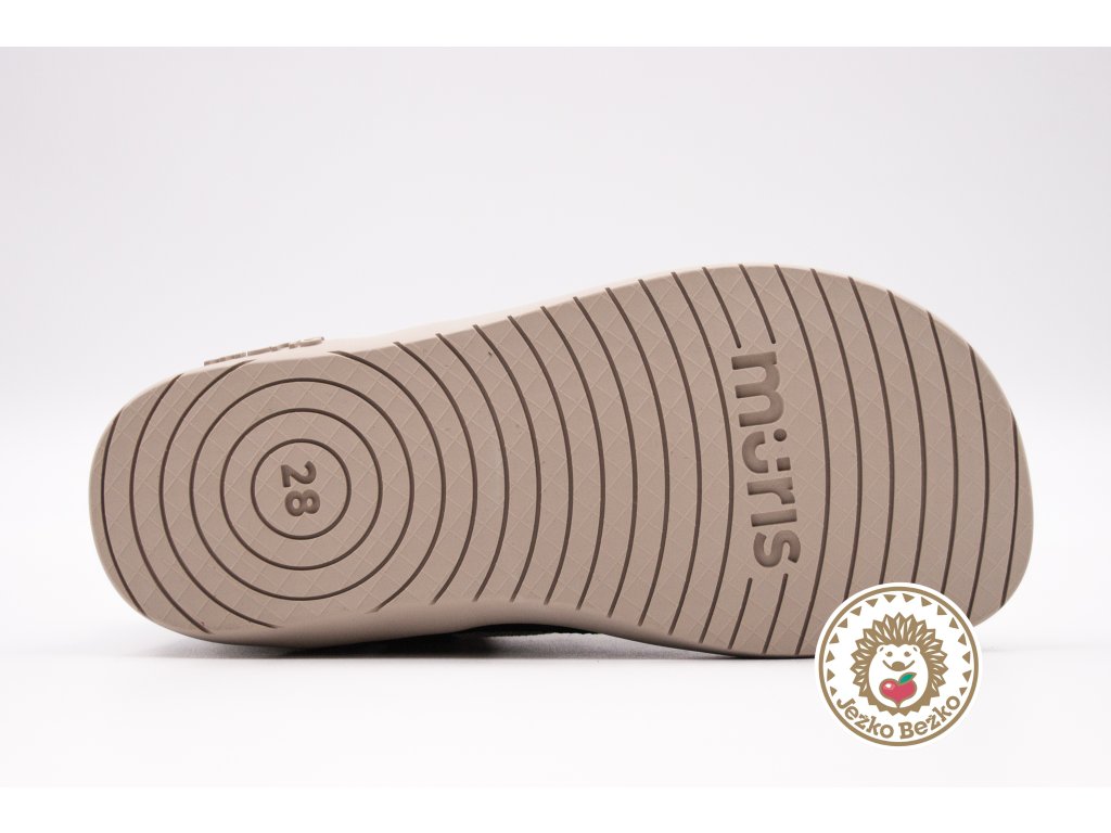 Muris je mladá značka zo Španielska, ktorá sa zameriava na udržateľnosť a rešpektujúci prístup k detským nôžkam aj k našej planéte. Využíva vegánske materiály na biologickej báze, organické suroviny a zvyšky z iných výrobných procesov – ako sú odpad z vinárskeho priemyslu, rastlinné oleje či prírodné vlákna z poľnohospodárstva.