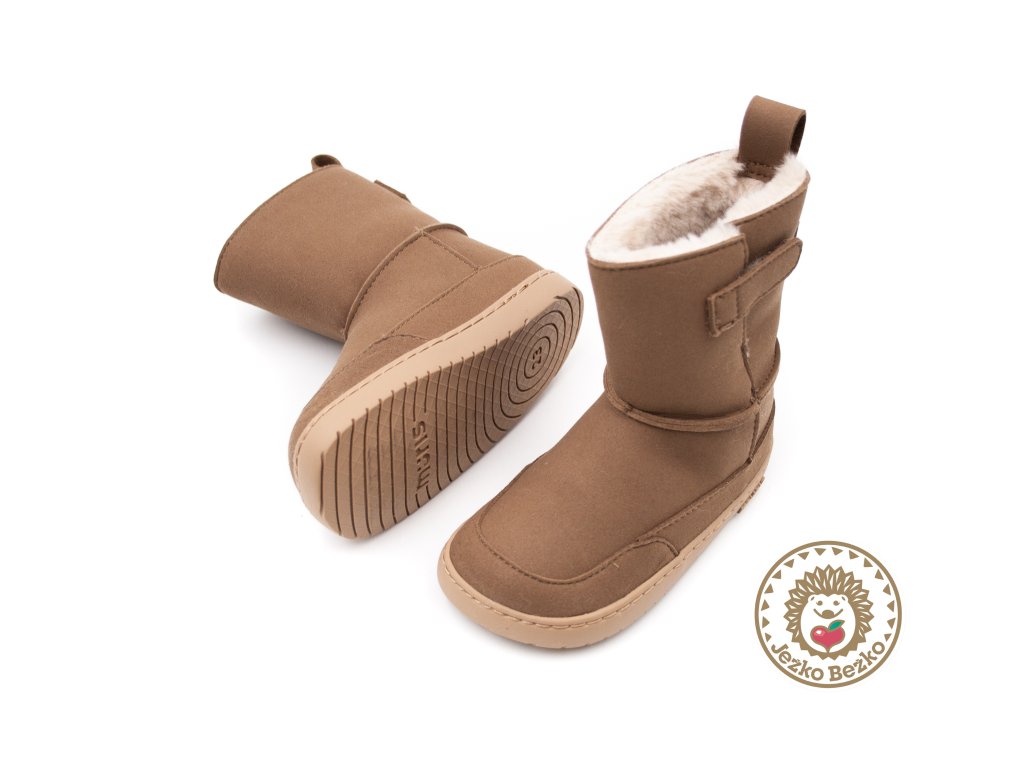 DETSKÉ ZIMNÉ BAREFOOT TOPÁNKY MURIS SIBERIA MINI - BARK BROWN