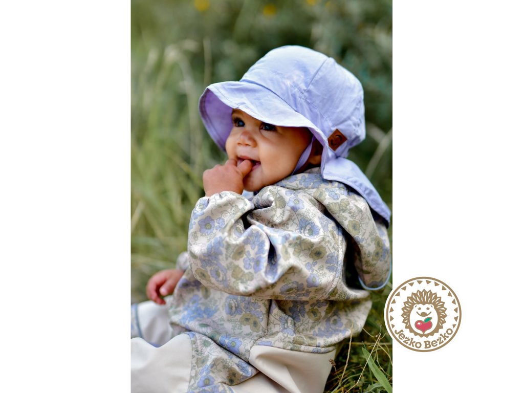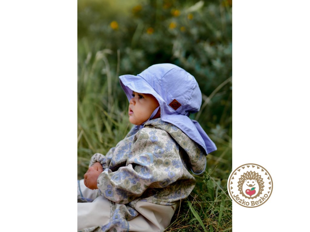 Tento minimalistický jednofarebný klobúčik ochráni detskú hlávku, oči aj krk pred slnečnými lúčmi. Vďaka všitým gumičkám po bokoch a v zadnej časti krásne sedí, široký šilt vpredu tieni tvár, a predĺžená zadná časť zabezpečí krytie krku.