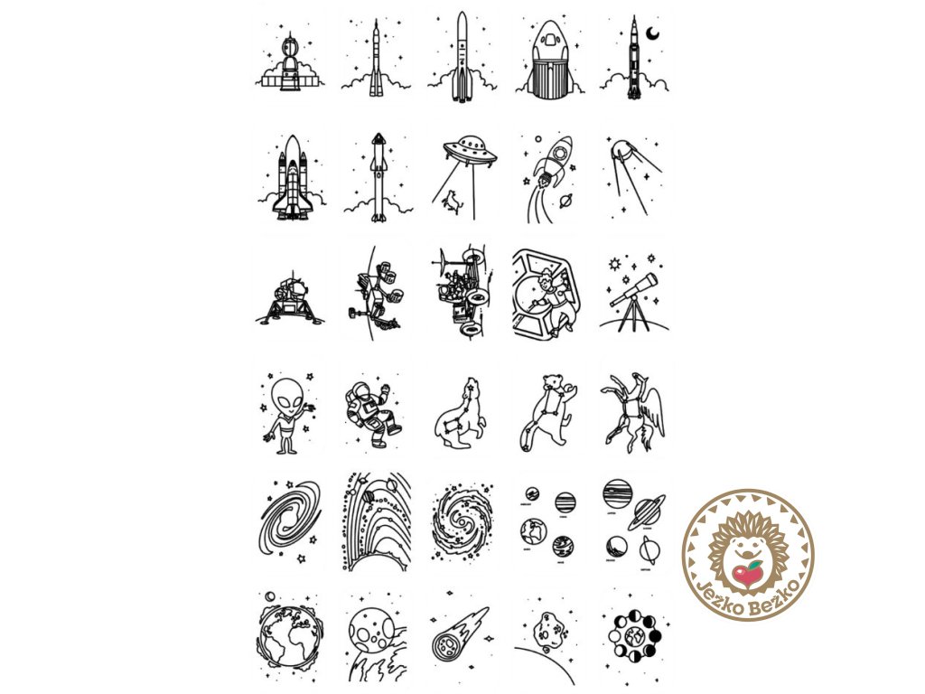 Náhradné náplne KIDYDRAW-MINI obsahujú tematické kartičky pripravené na obkresľovanie pre hodiny zábavného kreslenia.