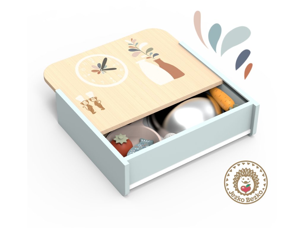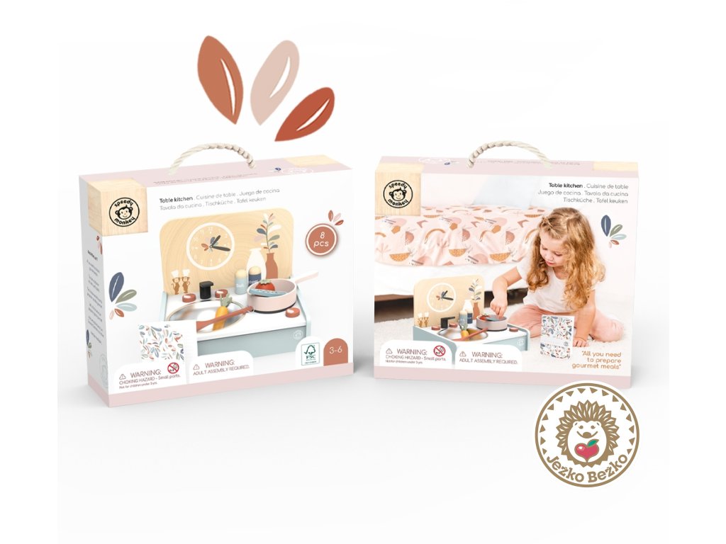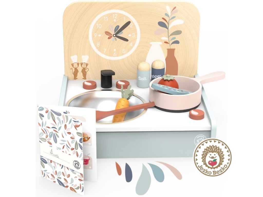 Zábavná drevená stolová verzia kuchynky Speedy Monkey, ktorú si vaše dieťa môže vziať kamkoľvek so sebou. Všetko je pripravené na varenie, servírovanie a vychutnávanie jedál. Súčasťou balenia je aj príslušenstvo, ako napríklad varič, panvica, soľ, korenie a ďalšie.