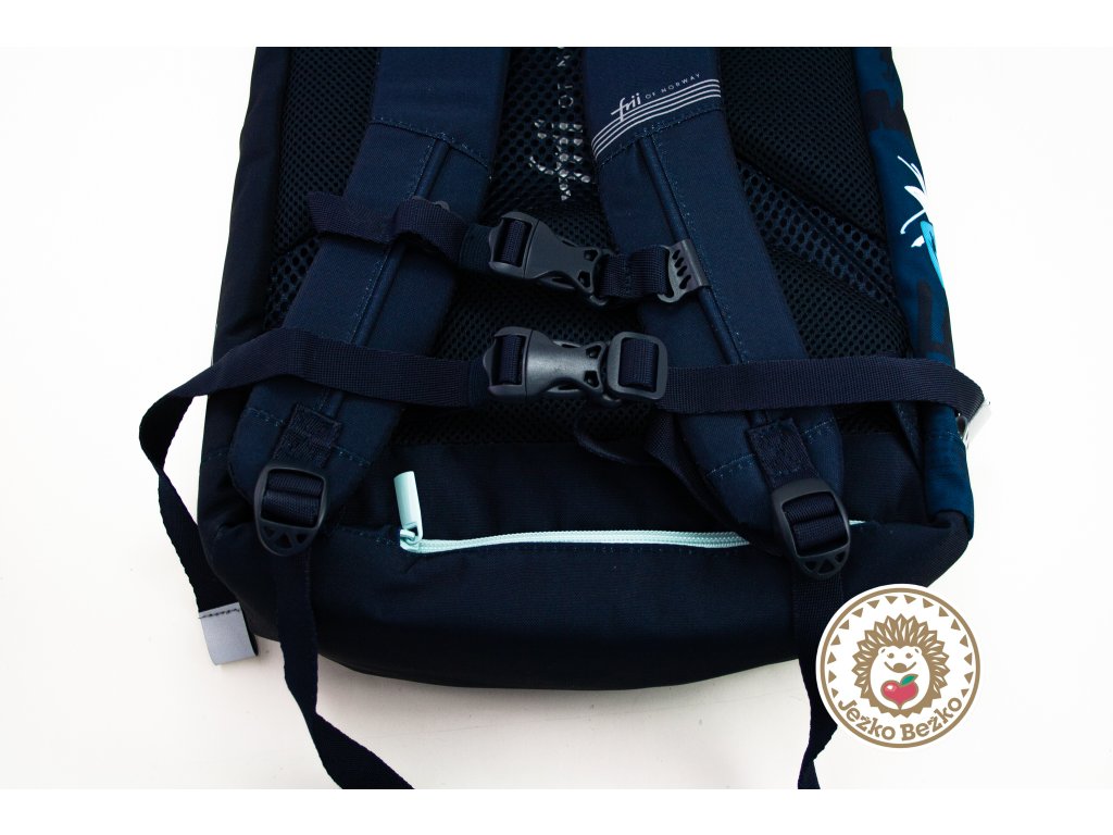 Školské batohy Frii of Norway skvele sedia na detskom chrbte. Základom opory nosného systému je vyberateľná, ergonomicky tvarovaná hliníková lišta, ktorá podporuje správne držanie tela a zabraňuje taške ohýbať sa a meniť tvar. Celá plocha tašky, ktorá sa dotýka chrbta, je príjemne priedušná a mäkká, nikde netlačí.