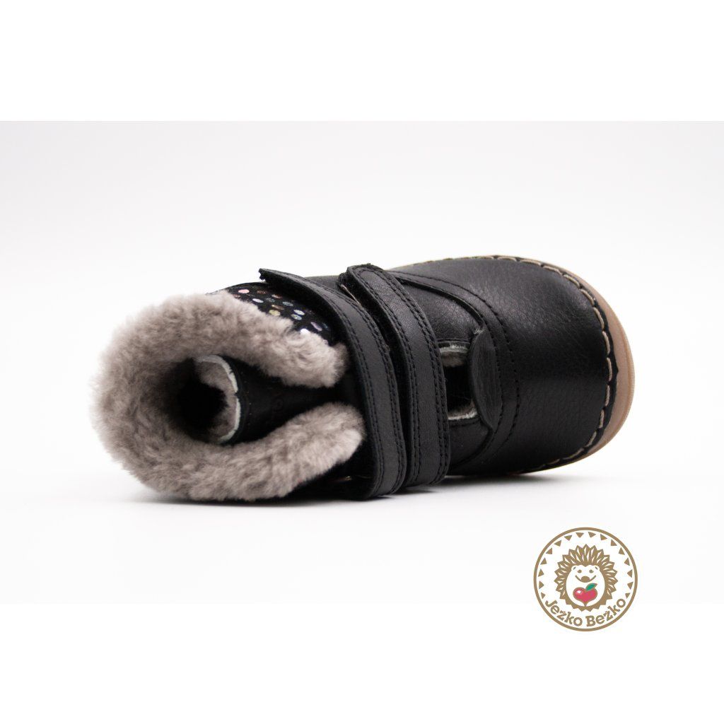 Čižmičky majú flexibilnú podrážku so zvýšenou gumou vpredu proti okopu, zvršok je kožený a vnútro zateplené mäkkučkou jahňacou kožušinkou. Tá má skvelé termoregulačné vlastnosti, udrží nôžky Vašich detí v teplúčku.
