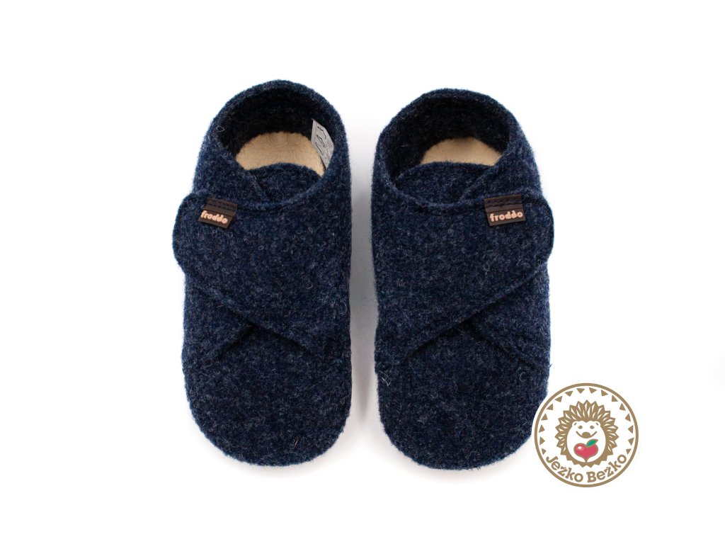 DETSKÉ BAREFOOT PAPUČE FRODDO PREWALKERS WOOLY - DARK BLUE