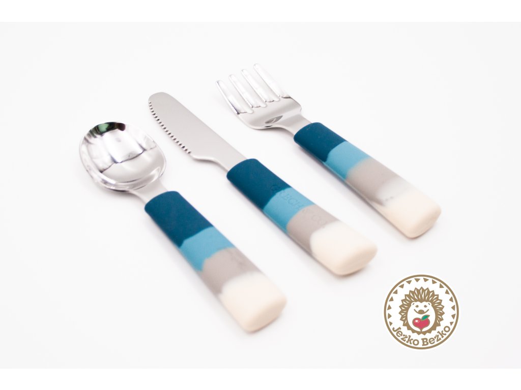 Deti milujú robiť veci ako my dospelí, my však musíme zabezpečiť, aby to bolo bezpečné. Tento detský jedálenský príbor je prispôsobené detským rúčkam a obsahuje vidličku, lyžičku aj nôž s nešmykľavou, silikónovou rúčkou.