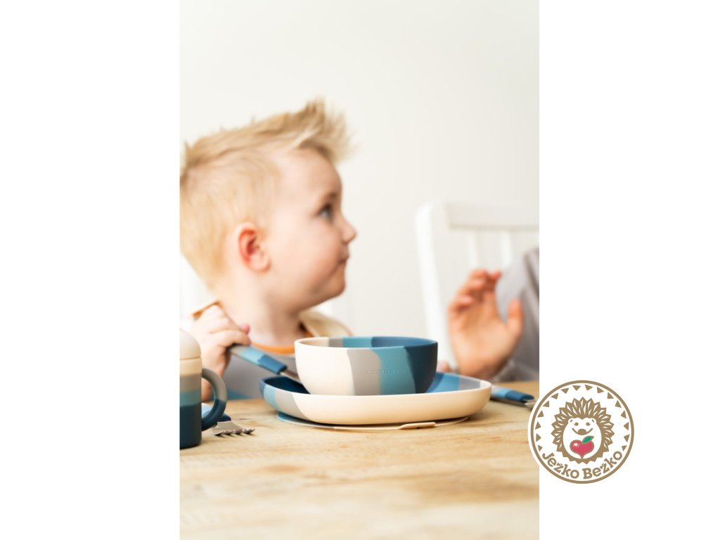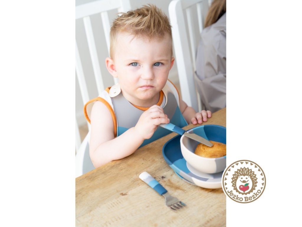 Tento set je vhodný ako prvý detský príbor, keď už chcete deti učiť stolovať ako veľkáči. Na prvé príkrmy vyberte radšej mäkkú, silikónovú lyžičku.