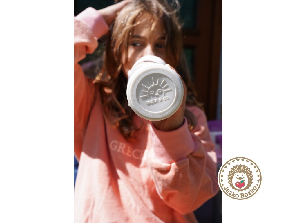 Grech & Co. fľaška na pitie je vyrobená z BA Free silikónu a nehrdzavejúcej ocele schválenej na kontakt s jedlom. Praktickou vychytávkou je aj mäkká silikónová rukoväť.
