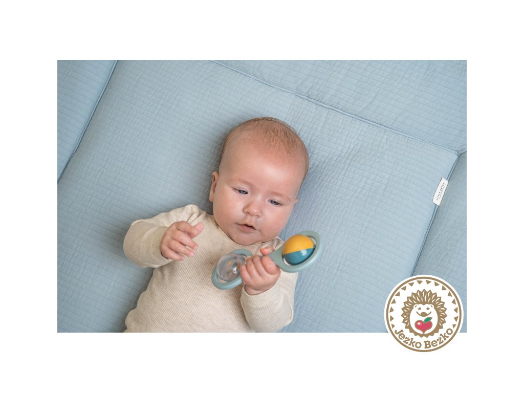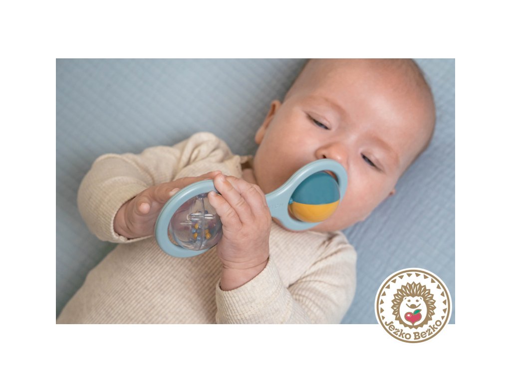 Hrkálka má tvar pre ľahké uchopenie malými detskými ručičkami.