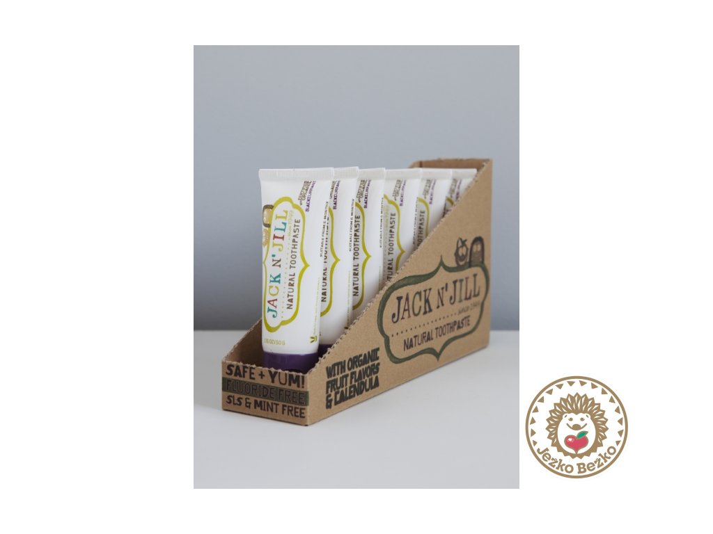 Rozhodli sa preto vytvoriť tú absolútne najbezpečnejšiu a najchutnejšiu zubnú pastu pre deti.Zubná pasta Jack N‘ Jill je pre deti 100% bezpečná – obzvlášť s ohľadom na to, že deti pastu často prehĺtajú. Je dostupná v 5 príchutiach, ktoré sú v certifikovanej organickej kvalite, ako aj nechtík lekársky pre upokojenie ďasien.
