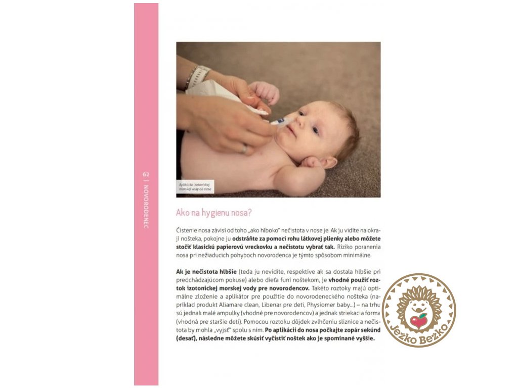 sa na pobyt v pôrodnici a vedieť, čo ich dieťatko v pôrodnici reálne čaká. Súčasťou tejto kapitoly sú aj informácie o dojčení. - Novorodenec – kapitola zahŕňa informácie, ako sa starať o jednotlivé sústavy v novorodeneckom veku (oči, uši, nos, ústa, koža, pupok, genitálie...), ako správne manipulovať s novorodencom, no venuje sa tiež liekovej a vitamínovej výbave,